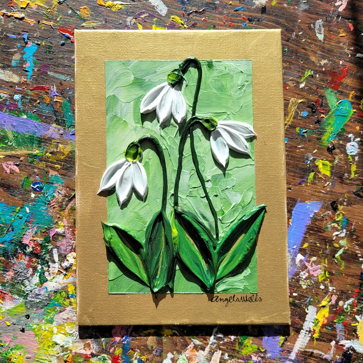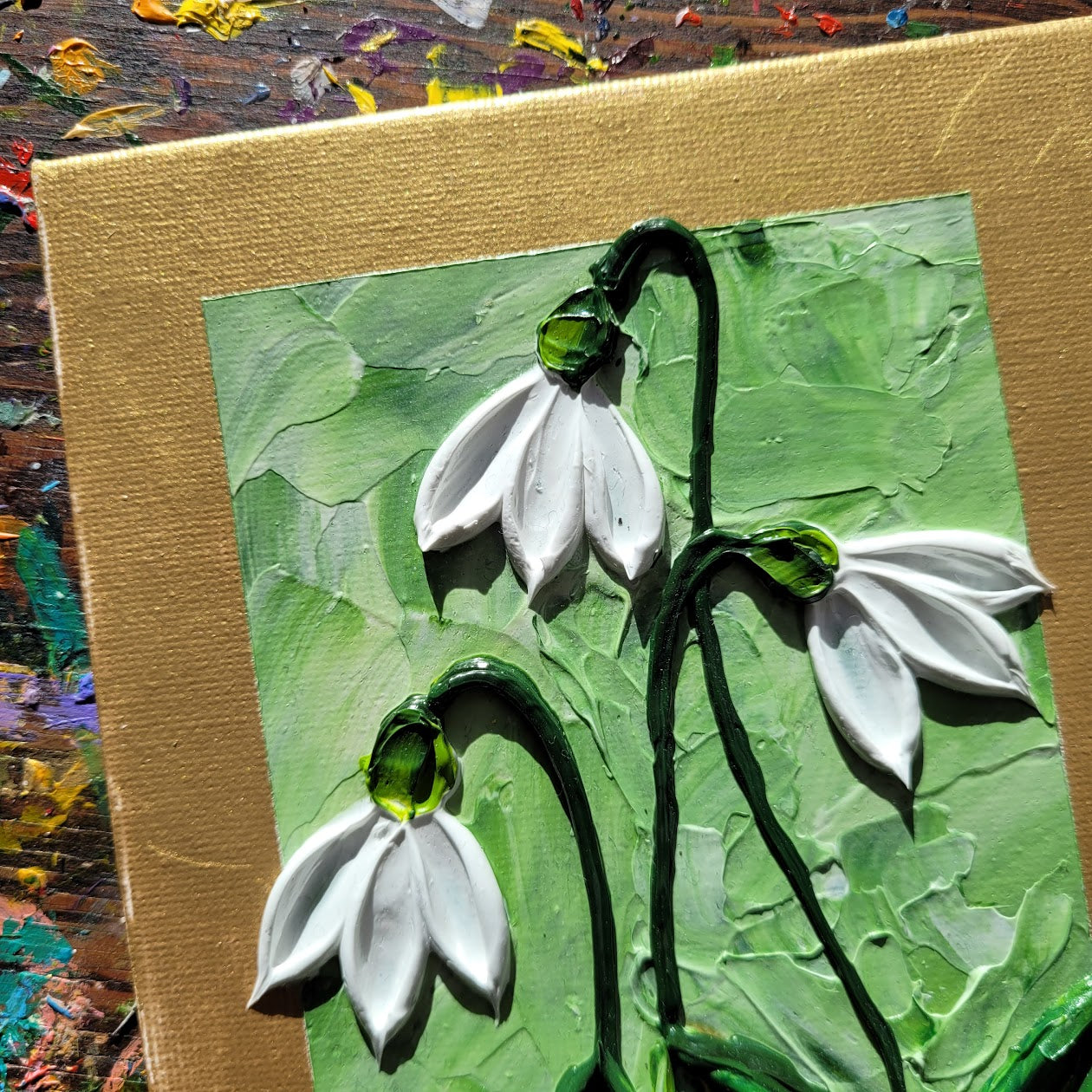 Snowdrop Impasto Painting | 5" by 7" Canvas Board